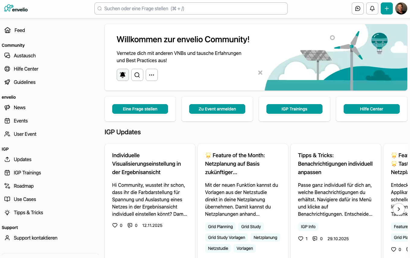 Profitiert vom Wissen anderer IGP-Nutzer: In unserer Community tauscht ihr euch mit Kollegen aus der Branche aus, diskutiert Anwendungsbeispiele und erhaltet Einblicke in bewährte Vorgehensweisen – damit die IGP den maximalen Nutzen stiften kann.